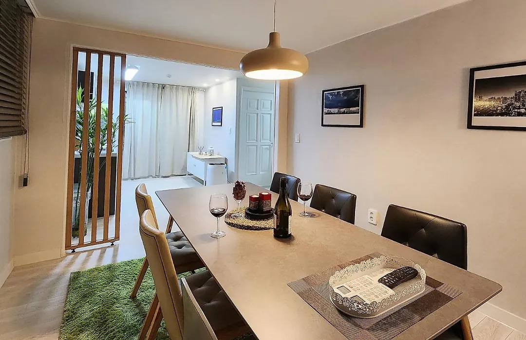 Das Apartment 잠실역 근처 가족숙소 더하리하우스 verfügt über eine Küche und eine voll ausgestattete Küche und Annehmlichkeiten wie eine Klimaanlage. Diese 63 m² großen Apartments bietet außerdem 1 Bad. Außerdem stehen ein Haartrockner, Handtücher und Hausschuhe zur Verfügung.